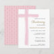 Budget Simple Pink Cross Girl Christening Baptism Invitation