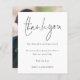 Simple Script Photo Wedding Thank You. A budget friendly SMALLER 4.5” x 5.6” alternative. Available in a SEMI GLOSS 110 lb CARD STOCK or a SATIN FINISH 80 lb THINNER PAPER STOCK. Envelopes are an optional extra. . A minimalist typography design with a set stylish handwriting style script for Thank You. On the back replace the sample picture with your own favourite from your day as a keepsake for your guests. Easily personalise the rest of the text with your message and names.