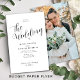 Elegant, simple, minimalist black and white cheap budget wedding invitation with custom engagement photo and a chic, bold calligraphy script. +++++++++++++++++ PLEASE READ THIS BEFORE PURCHASING! This is a cheap budget wedding invite printed on a FLYER (advertising type of paper suitable for folded mailings). ++++ Please note that BUDGET PAPER IS THIN - You can upgrade to have this card printed on cardstock ++++ ENVELOPES NOT INCLUDED. +++ Double-check all the information and spelling of your text because you will receive exactly what you see - no one else will check anything before printing. ++++ This card is designed for size 5.5" x 8.5".