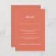 Budget Modern and Simple Terracotta QR Code RSVP Card. The font colour and type can be changed via the edit menu. You can also change text and background colours on either side if you wish. Add your QR code to your wedding website on the back as a convenient option for your guests to RSVP. QR codes can be created free online. Simply search “QR code creator” and select one of the free creators. You can also remove the QR code should you wish.