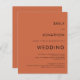 Simple Text Terracotta QR Code Wedding Invitation. A budget friendly SMALLER 4.5” x 5.6” alternative. Available in a SEMI GLOSS 110 lb CARD STOCK or a SATIN FINISH 80 lb THINNER PAPER STOCK. Add your QR code to your wedding website on the back makes this a convenient option for your guests to RSVP and see all the details without the need for separate RSVP and details cards. This minimalist terracotta design has simple black typography which you can easily personalise. You can also change the text and background colours on each side to match your wedding theme if you wish via Customise further. If you need any assistance with this please message me.