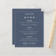 Simple Text Dusty Navy Blue Wedding Menu. A budget price SMALLER 4.5” x 5.6” alternative. Available in a SEMI GLOSS 110 lb CARD STOCK which is the default option (recommended for invitations, similar to the thickness of a postcard), OR a SATIN FINISH 80 lb THINNER PAPER STOCK (ideal for enclosures). You can also change the font style and colours and the enchanted Dusty blue background colours on the front and back if you wish via the Click to Customise Further option.