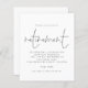 Budget Simple Typography Retirement Invitation. A budget price SMALLER 4.5” x 5.6” alternative. Available in a SEMI GLOSS 110 lb CARD STOCK which is the default option (recommended for invitations, similar to the thickness of a postcard), OR a SATIN FINISH 80 lb THINNER PAPER STOCK (ideal for enclosures). Minimalist style in black and white with this text only design, with the occasion header in a stylish set informal script. Easily personalise the rest of the text to your own details. The text and background colours can be changed to any of your choice via the customise further option.