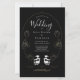 A stylish, gothic, wedding invitation on budget paper (thinner paper) in black, gold tones, and white. It features the couple represented as two skulls in a floral frame with roses. This invitation mixes a memorable mood with elegance, letting you design your wedding as you choose. Simply customise the text, add this invitation to your cart, then have a wedding that sees past the surface and cuts to what’s beneath.