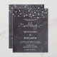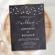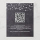 Invite friends and family to your wedding with these elegant yet rustic chalkboard and string lights wedding invitation cards. These unique slate all in one wedding invitations feature elegant white string lights on grey chalkboard slate design with wedding website qr code for easy RSVP's. Personalise these chalkboard wedding invitations with names, wedding date, and location. See our wedding collection for unique wedding invitations, wedding photo albums, guest books, party gifts, and more! COPYRIGHT © 2020 Judy Burrows, Black Dog Art - All Rights Reserved. Budget Slate Rustic String Lights QR Code Wedding Invitation