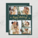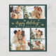 Budget Modern Elegant Green and Gold Script 5-Photo Collage Happy Holidays Script Holiday Card. Celebrate the season with this simple yet elegant holiday card featuring a clean five-photo collage on the front. The design is highlighted with delicate snowflake accents and a beautifully hand-lettered "Happy Holidays" script in gold calligraphy, set against a rich green background for a warm, festive feel.