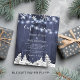 Rustic elegant winter wedding stylish budget affordable invitation flyer template on navy blue barn wood featuring pine trees wonderland border, white snowflakes, and strings of twinkle lights. +++++++++++ Easy to personalize with your details. +++++++++++ The invitation is suitable for elegant winter rustic mountains navy blue white weddings. ++++++++++ PLEASE READ THIS BEFORE PURCHASING! This is a budget affordable wedding card printed on a FLYER. ++++ Please note that BUDGET PAPER IS THIN - You can upgrade to have this card printed on cardstock ++++ ENVELOPES NOT INCLUDED. +++ Double-check all the information and spelling of your text because you will receive exactly what you see - no one else will check anything before printing. ++++ This card is designed for size 4.5" x 5.6". In the case you choose another size of the card and text goes outside page, everything needs to be fixed before adding the product to cart. Please ask Live Design Service for help.