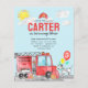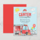 Modern Cute Sound the Alarm Fire Truck Dalmatian Dog Balloon Firefighter Birthday Invitation