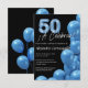 Budget Spanish Blue Balloons Black 50th Birthday Invitation