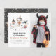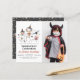 Get ready for an unforgettable Halloween party! On the left-hand side, this dynamic & budget invitation features a hand-drawn scene of a dancing skeleton, two mischievous ghosts, and a whimsical bat, all surrounded by a spooky ensemble of Halloween elements – crawling critters, eerie bones, a skull, and decorative black and orange dots. Beneath this enchanting scene, the thrill continues with "spooktacular celebration" presented in charming serif typography, followed by the birthday boy's name and age showcased in retro script. The essentials – date, venue, and time – are neatly divided into three sections by sleek vertical line dividers. On the right-hand side of this invite, there is a custom photo of the birthday boy. A no-photo version is available in our store. The back of the card shows a pattern of the Halloween characters set against a subtle grey backdrop. While we've used birthday text in the template, feel free to customise it for a costume party or any Halloween-themed extravaganza. Personalise this invitation effortlessly with Zazzle's design tool. As part of the budget selection on Zazzle, this sheet isn't a standard invite size or paper quality. If you want this design on an invitation card you can find it in our store or use the Zazzle Make Machine to transfer it onto the product of your choice. If you have any enquiries or special requests, don't hesitate to reach out to us. Please remember that existing orders cannot be modified, so be sure to connect with us first. Browse our collection for more Halloween party invitations!