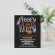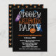 Budget Spooky Halloween Party Black Invitation. A budget price SMALLER 4.5” x 5.6” alternative. Available in a SEMI GLOSS 110 lb CARD STOCK which is the default option (recommended for invitations, similar to the thickness of a postcard), OR a SATIN FINISH 80 lb THINNER PAPER STOCK (ideal for enclosures). Envelopes are an optional extra and are slightly larger than the card size. Invite your friends to a Spooky Halloween Party and Trick and Treat evening with this eerie invitation! The main header typography is set in orange and white and in a funky script adorned with spider web motifs and a witches hat, cat, cute pumpkin and bats add to the spookiness! On the back Is a pattern of pumpkins and potion on a black background. The text with the details can be easily personalised, and you can also change the colour of this text and the background colours on the front and back via the Click to Customise Further option if you so wish.
