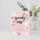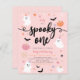 Budget spooky one Halloween cute pink ghost 1st birthday party invitation. Modern Halloween-themed design for a spooky party! This birthday invitation features spider's webs, ghosts, pumpkins, bats, spiders, leaves, corns, stars and daisies. This invite is great for little girls!