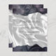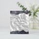The top and bottom edges of this elegant modern wedding invitation feature a deep, stormy purplish grey watercolor agate border trimmed with faux silver glitter. The customisable text combines handwriting, sans serif and italic fonts in charcoal grey on a background image of white silk. The reverse side features a matching grey agate and white silk design.