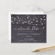 Save The Date! Announce your wedding to friends and family with these budget rustic chalkboard and string lights save the date postcards. These budget wedding invitation postcards need to be mailed as oversized postcards so may incur standard postage fees but they don't need an envelope or a return address label. These unique string lights and chalkboard slate wedding save the cards will make a lasting impression, your guests will make sure to save the date! COPYRIGHT © 2020 Judy Burrows, Black Dog Art - All Rights Reserved. Budget String Lights Rustic Wedding Save The Date Postcard