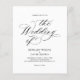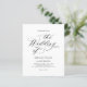 This wedding invitation features an elegant and minimalistic design, with classic black calligraphy and serif fonts on a white background.