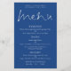 Budget Stylish Script White Blue Wedding Menu