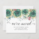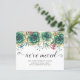 Send your family and friends this botanical moving card to let them know your new address. This cute design features a top border of hand painted watercolor succulents hens and chicks greenery. Below in decorative black script, it reads, "We've Moved" with your name and address for you to personalise. The back of the card has a message and signature for you to customise as well accented by more succulents. Designed just for you by Susan Coffey.