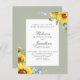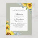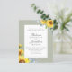An elegant and modern Budget Wedding Invitation features a stylish typographical design with a gorgeous sunflower and eucalyptus watercolor floral graphic. A subtle sage green colour is used for the background. This piece of wedding stationery is ready for you to customise with the details of your special day.