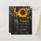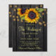 Rustic country wedding celebration and reception stylish budget affordable invitation template on dark brown barn wood background featuring big yellow gold sunflowers bouquets, strings of twinkle lights and a faux gold typography script. ++++++++ If you need ENVELOPES, please select ENVELOPE option! +++++++++++ Easy to personalise with your details! ++++++++++++ The invitation is suitable for outdoor garden backyard rustic country weddings.