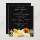 Save money on invitations with this smaller invitation that has an option for envelopes. Get your guests ready for the amazing wedding with this Sunflower & White Rose Floral Black Wedding invitation.