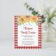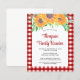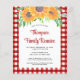 Invite your family to their gathering with this budget family reunion invitation which is decorated with watercolor sunflowers and greenery on a red gingham background.