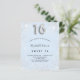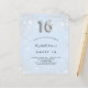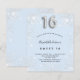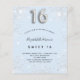 A modern, stylish and glamourous invitation for a girl's Sweet 16, 16th birthday party. A baby blue background, decorated with faux silver glitter dust. Personalise and add your name nad party details. Number 16 is written with a balloon style font, script.