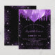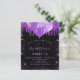 For an elegant Sweet 16, 16th birthday. A stylish black background. Decorated with purple faux glitter and balloons. Personalize and add a name, age and party details. The name is written with a hand lettered style script