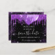 A girly and trendy Save the Date card for a Sweet 16, 16th birthday party. A black background decorated with purple faux glitter drips, sparkles, and balloons. Personalise and add a date and name/age. The text: Save the Date is written with a large trendy hand lettered style script.