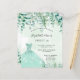 A trendy invitation for a Sweet 16, 16th birthday party, enchanted forest theme. A green watercolored background with ferns and eucalyptus greenery, a green dress. The name is written with a modern hand lettered style script. Personalise and add your party details.