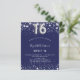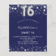 A modern, stylish and glamourous invitation for a Sweet 16, 16th birthday party. A navy blue background, decorated with faux silver stars. Personalise and add your name and party details. Number 16 is written with a balloon style font.