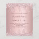 A modern, stylish and glamourous invitation for a girl's Sweet 16, 16th birthday party. A dusty rose, pink faux metallic looking background with faux glitter drip, paint dripping look. The name is written with a modern dark rose gold coloured hand lettered style script. Personalise and add your party details.