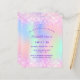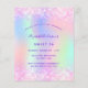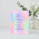 A girly and feminine Sweet 16, 16th birthday party invitation. On front: A rainbow, holographic coloured background in purple, pink, mint green, rose gold. Decorated with blush pink faux glitter, sparkles. Personalise and add a name and party details. The name is written with a hand lettered style script, purple coloured letters.