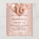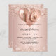 For an elegant Sweet 16, 16th birthday. A rose gold faux metallic looking background. Decorated with rose gold, pink faux glitte, sparkles and balloons. Personalise and add a name, and party details. The name is written with a hand lettered style script, number 16 with balloon style fonts.