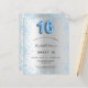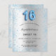 A modern, stylish and glamourous invitation for a girl's Sweet 16, 16th birthday party. A faux silver looking background, decorated with blue coloured glitter dust. Personalise and add your name nad party details. Number 16 is written with a balloon style font, script.