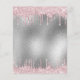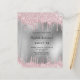 A modern, stylish and glamourous invitation for a Sweet 16, 16th birthday party. A faux silver metallic looking background with an elegant pink faux glitter drip, paint dripping look. The name is written with a black modern hand lettered style script. Personalise and add a name, age and party details.