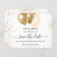 A chic white background decorated with faux gold glitter and balloons. Personalise and add a date and name/age. The text: Save the Date is written with a large trendy hand lettered style script.