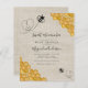 This Sweet as Can Bee baby shower invitation has watercolor honeycombs and sweet little bumblebees making heart shapes as the fly.