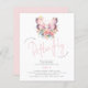 Budget Sweet Butterfly On Way Floral Baby Shower. A budget priced smaller 4.5 x 5.6” on semi-gloss 110lbs similar in thickness to a postcard. There is ONE per sheet. A cute butterfly peeking through florals is at the top and ann elegant modern set script for Butterfly. Easily personalise the rest of the words as required. A coordinating pink is on the back which you can change to another size if you wish via edit further.