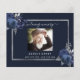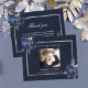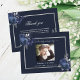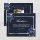 A simple and elegant sympathy thank you card with photo. A navy blue background, a faux silver frame and blue florals. Personalise and add your thank you note.