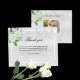 A simple and elegant sympathy thank you card with photo. A faux silver metallic looking background, a white frame, faux glitter dust, white florals and greenery. Personalise and add your thank you note. Black text.