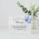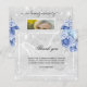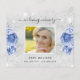 A simple and elegant sympathy thank you card with photo. A faux silver metallic looking background, a white frame, faux glitter dust, blue roses, florals and a butterfly as watermark. Personalise and add your thank you note. Black text.