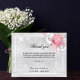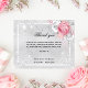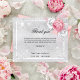 A simple and elegant sympathy thank you card. A faux silver metallic looking background, a white frame, faux glitter dust, white and pink roses, florals. Personalise and add your thank you note. Black text.