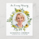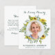 Modern Watercolor Sunflower Floral and Eucalyptus Sympathy Photo Funeral Thank You Cards. These sympathy funeral cards feature a unique photo template in sunflower and eucalyptus greenery wreath,, name and dates, on a modern white design. Personalise back with your message of thanks. These memorial sympathy cards are perfect for funeral thank you cards, or celebration of life thank you cards. COPYRIGHT © 2020 Judy Burrows, Black Dog Art - All Rights Reserved. Budget Sympathy Sunflower Photo Funeral Thank You