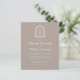 This elegant vintage-inspired wedding invitation design features a pair of white monogram initials in open serif font above and below a dividing line and encircled by a line art botanical crest on a taupe background. The back of the card is solid taupe.