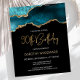 This trendy 90th birthday invitation features a watercolor image of an agate geode in shades of teal with faux gold highlights. The words "90th Birthday" appear in faux gold glitter in decorative modern handwriting font. Customise it with the name of the honoree in gold coloured text and the details in white. The same teal agate image appears on the reverse side.