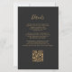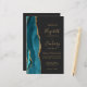 The left-hand edge of this elegant modern wedding invitation features a teal blue watercolor agate border trimmed with faux gold glitter. The customisable text combines gold-coloured handwriting, copperplate and italic fonts on an off-black background. Add additional details on the back, along with a QR code to help your guests visit your wedding website.