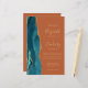 The left-hand edge of this elegant modern wedding invitation features a teal blue watercolor agate border trimmed with faux gold glitter. The customisable text combines gold-coloured handwriting, copperplate and italic fonts on a burnt orange or rust background. Add additional details on the back, along with a QR code to help your guests visit your wedding website.