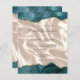 The top and bottom edges of this elegant modern wedding invitation feature a teal blue watercolor agate border trimmed with faux gold glitter. The customisable text combines handwriting, sans serif and italic fonts in charcoal grey on a background image of ivory silk. The reverse side features a matching teal agate and ivory silk design.