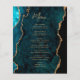 Budget Teal Blue Gold Agate Wedding Menu