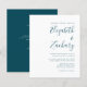 This simple modern wedding invitation features teal blue text on a white background. Add the names of the bride and groom in stylish handwriting calligraphy and the details in sans serif font. The reverse side provides space for wedding details on a solid teal background, along with a QR code guests can scan to visit your website and RSVP. NOTE: Envelopes are not automatically included with these budget invitations, so please remember to choose the "white envelopes" option!